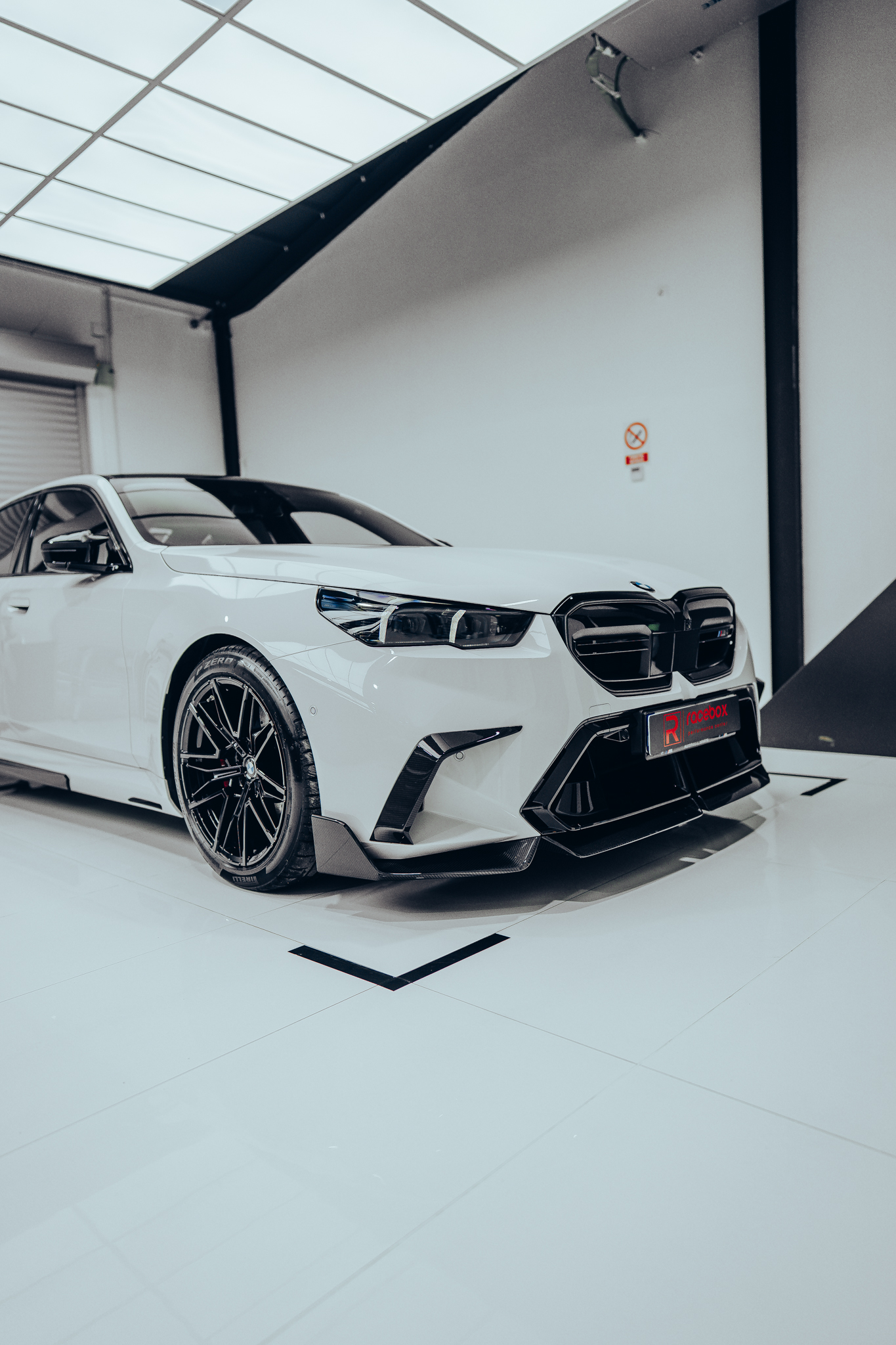 Transform the presence of your BMW M5 G90 with a complete carbon fiber body kit engineered and produced entirely in-house. Designed with precision and intent, this package enhances both aerodynamics and visual aggression without compromising OEM fitment.